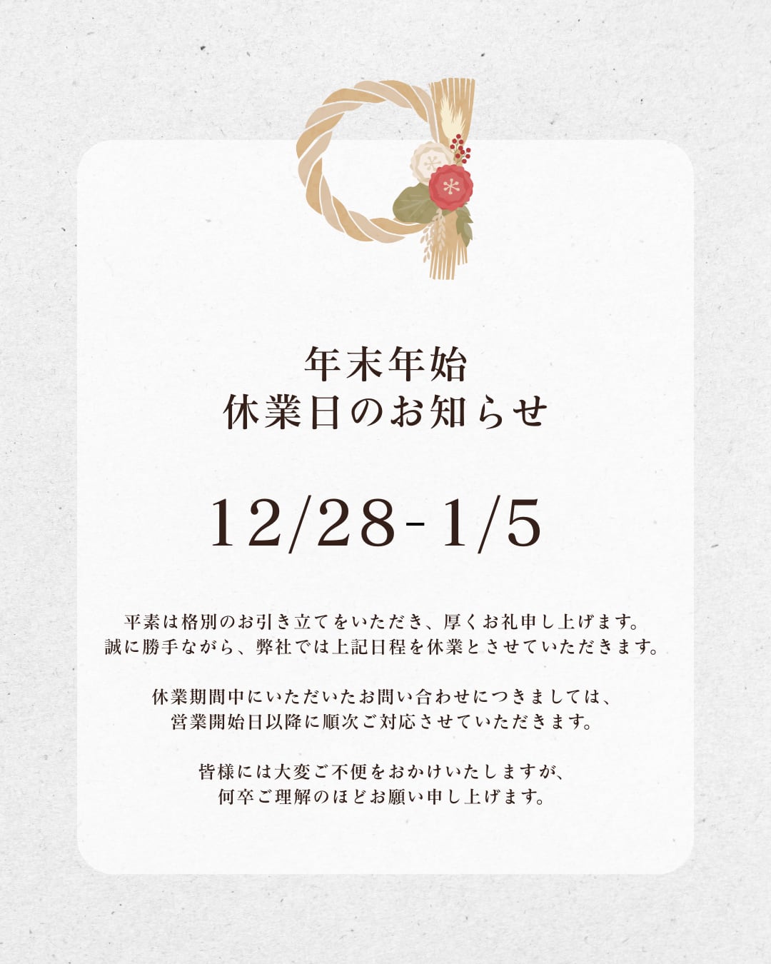 【重要】年末年始休業のお知らせ | TIMEC inc.